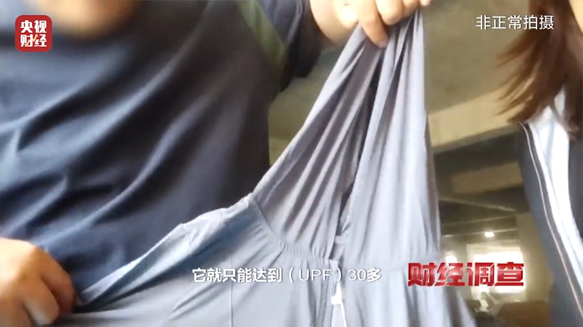 記者隨後到江蘇徐州的防曬衣工廠進行調查,發現廠商販售的防曬衣UPF值僅30多,遠低於網購平台上標榜的50+,連兒童款防曬衣也不達標,對此工廠人員表示「達不到」。