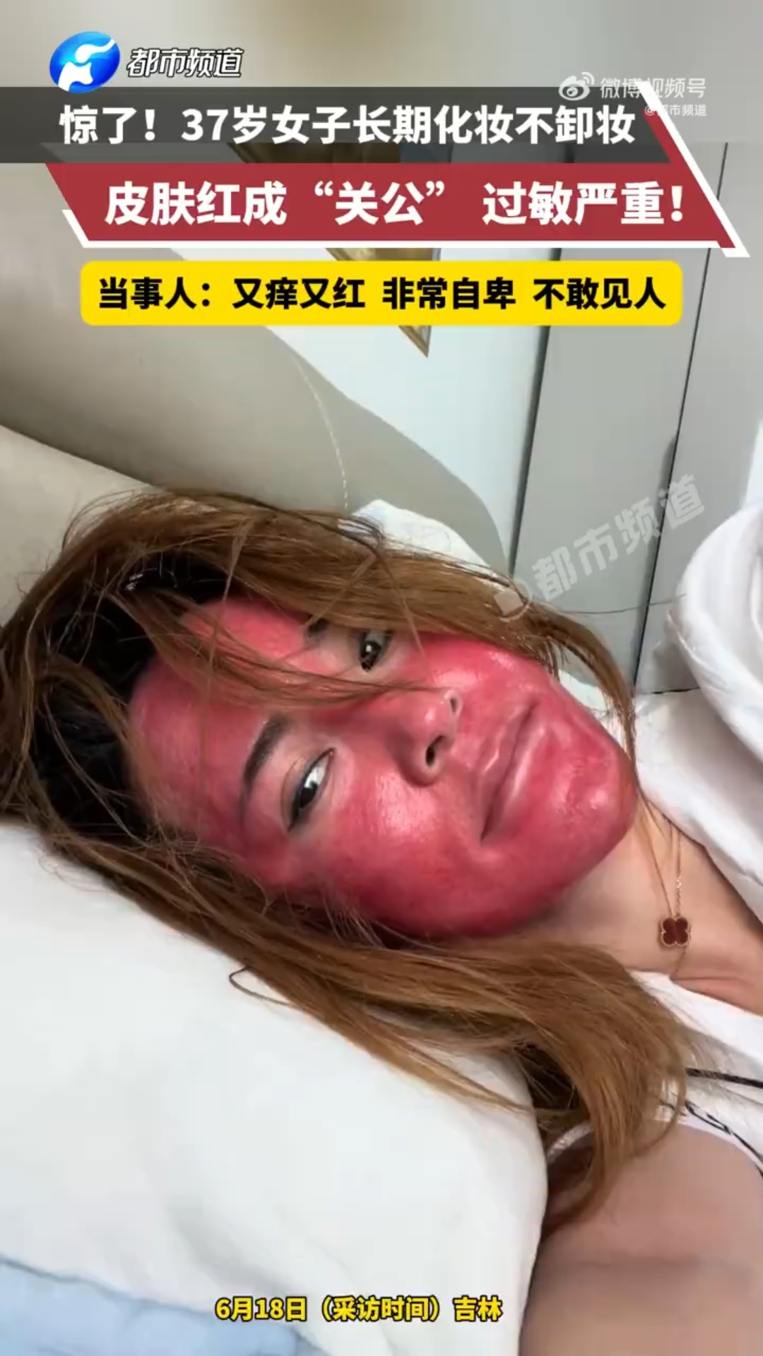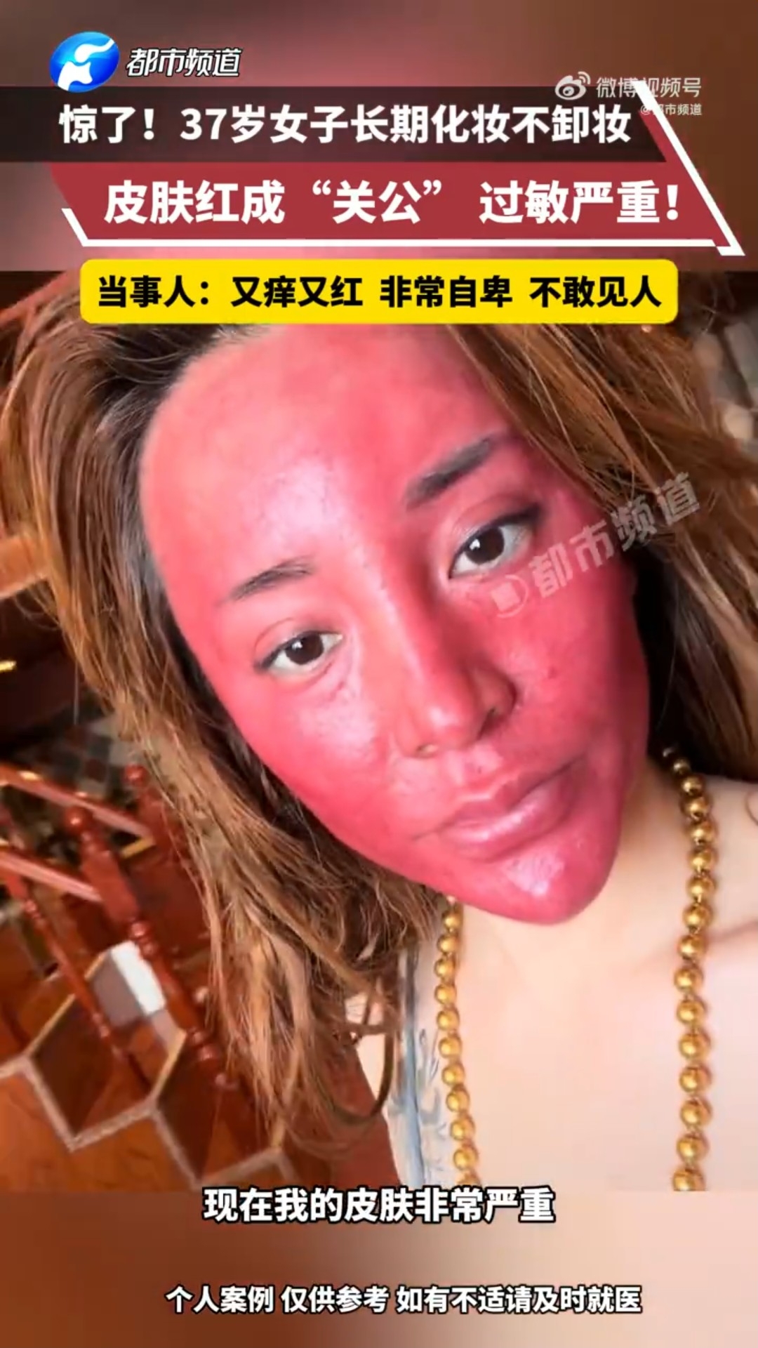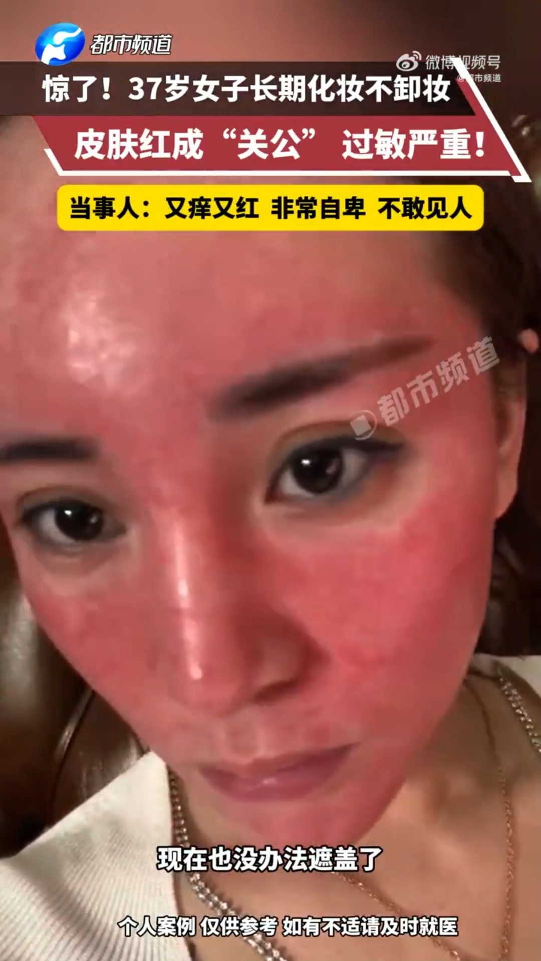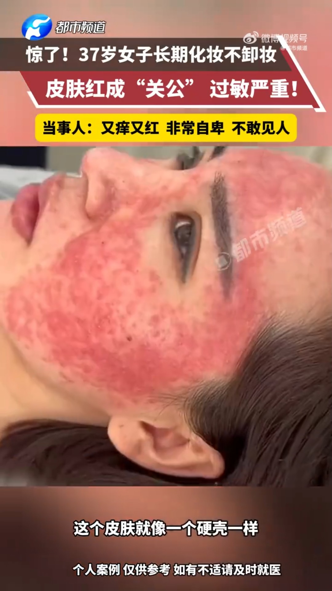 【卸妝/清水/洗臉/皮膚/紅腫/關公/殘留/化妝品/危機/洗面】綜合內媒報道,吉林省一名37歲高姓女子表示,自己從15歲學會化妝起,至今化妝已20多年,基本上不太卸妝,最多睡前用清水沖洗了事。