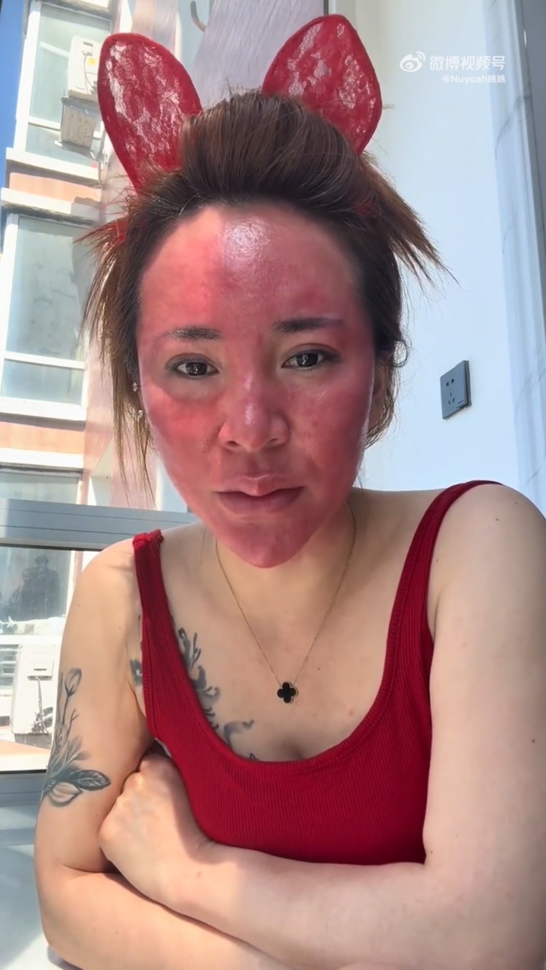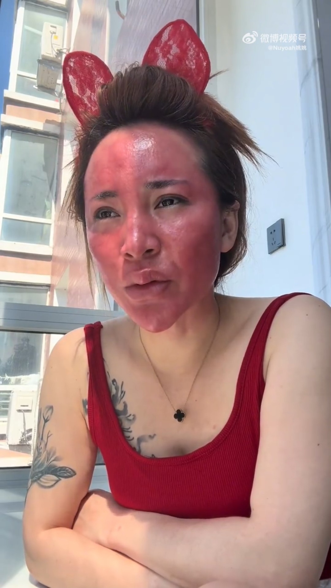 高女透露注射水光針後,不僅臉部皮膚變得僵硬,連皮膚顏色也變得深重,從發紅轉為發紫,發燙、發癢的情況也變得更加嚴重。她形容現在自己臉上皮膚「像個硬殼一樣,又硬、又癢、又紅」。她又指現在每天躲在家中,不敢出去見人。