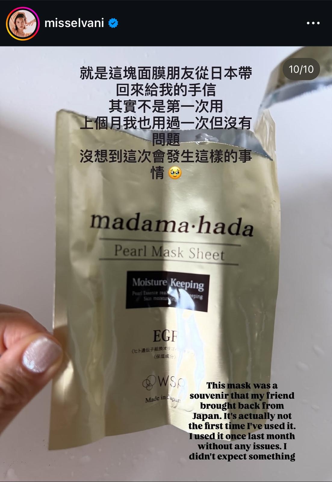 據倪晨曦表示,她當時使用的是日本品牌「madama.hada珍珠面膜」:
