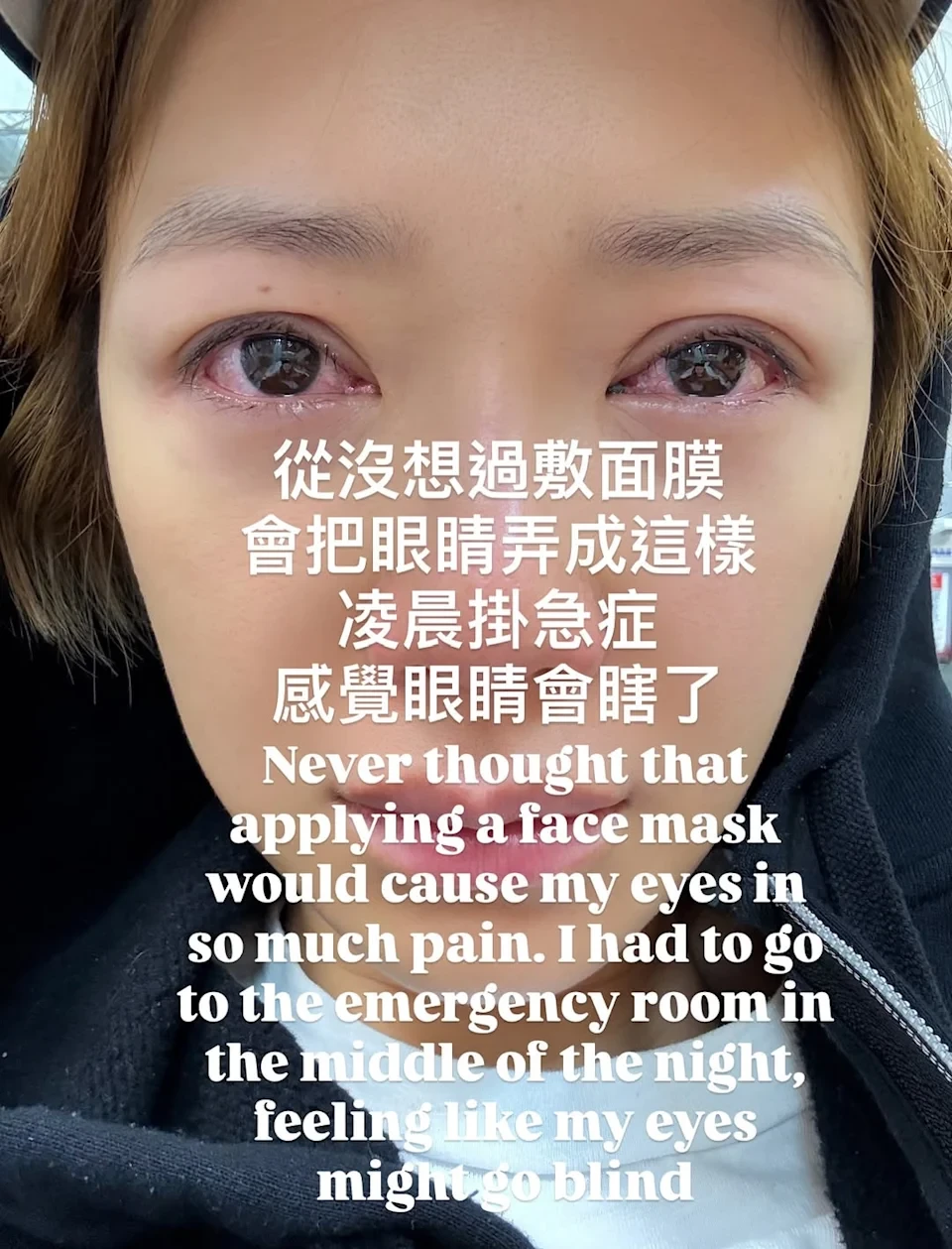 【倪晨曦/敷面膜危機/失明危機】敷面膜是女士日常,但想不到會引發失明危機!日前藝人倪晨曦在Instagram發文表示敷面膜後,雙眼突發劇痛紅腫、視力模糊,要緊急送醫。敷面膜時若眼睛受刺激,即睇敷面膜注意事項及外物入眼的自救方法。