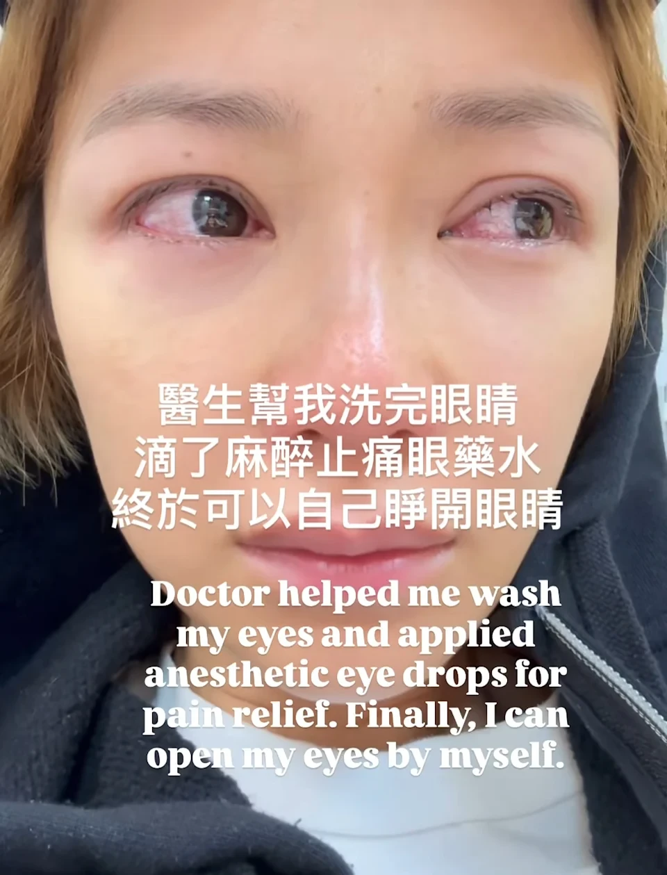 ▶ 🚑 丈夫緊急送醫,診斷為「外來刺激物侵襲」,角膜未受損