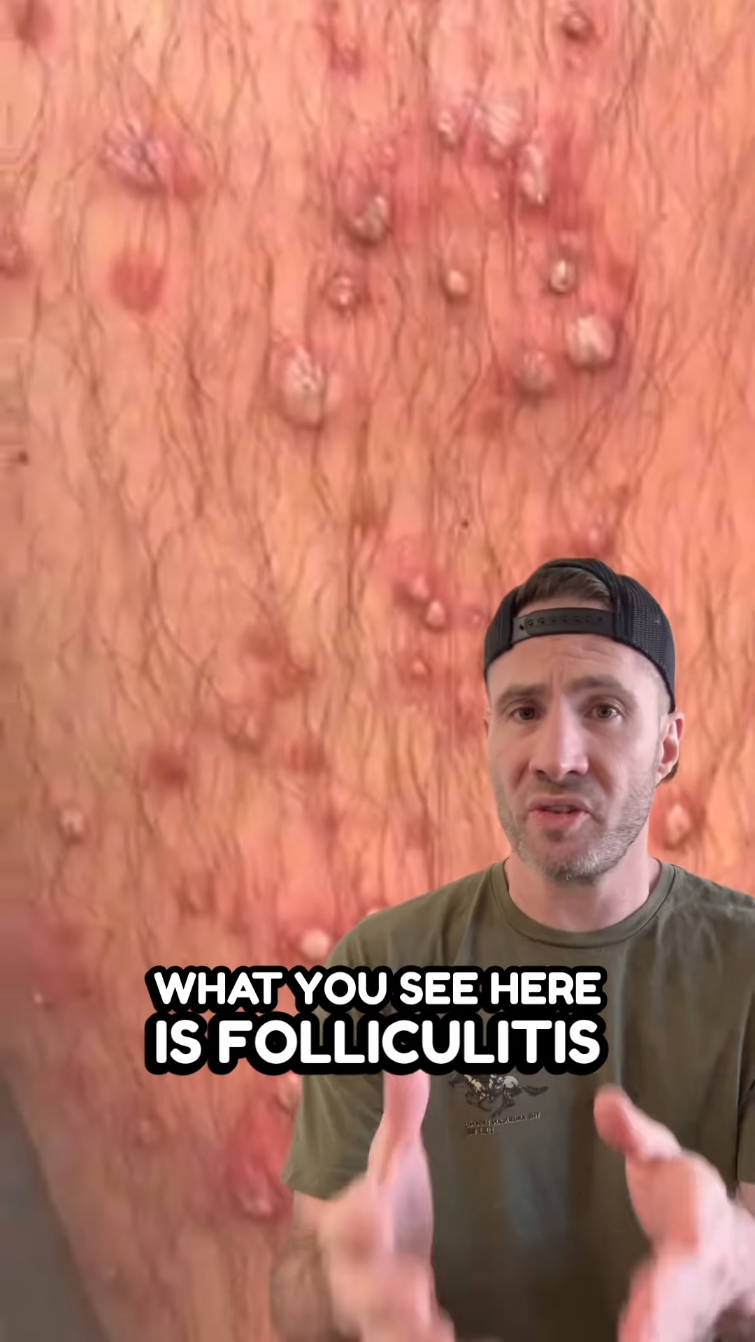 然而翌日早上,該男子醒來發現腿部出現發痛的紅腫塊,確診患上毛囊炎,該是一種由毛囊發炎引起的皮膚病。