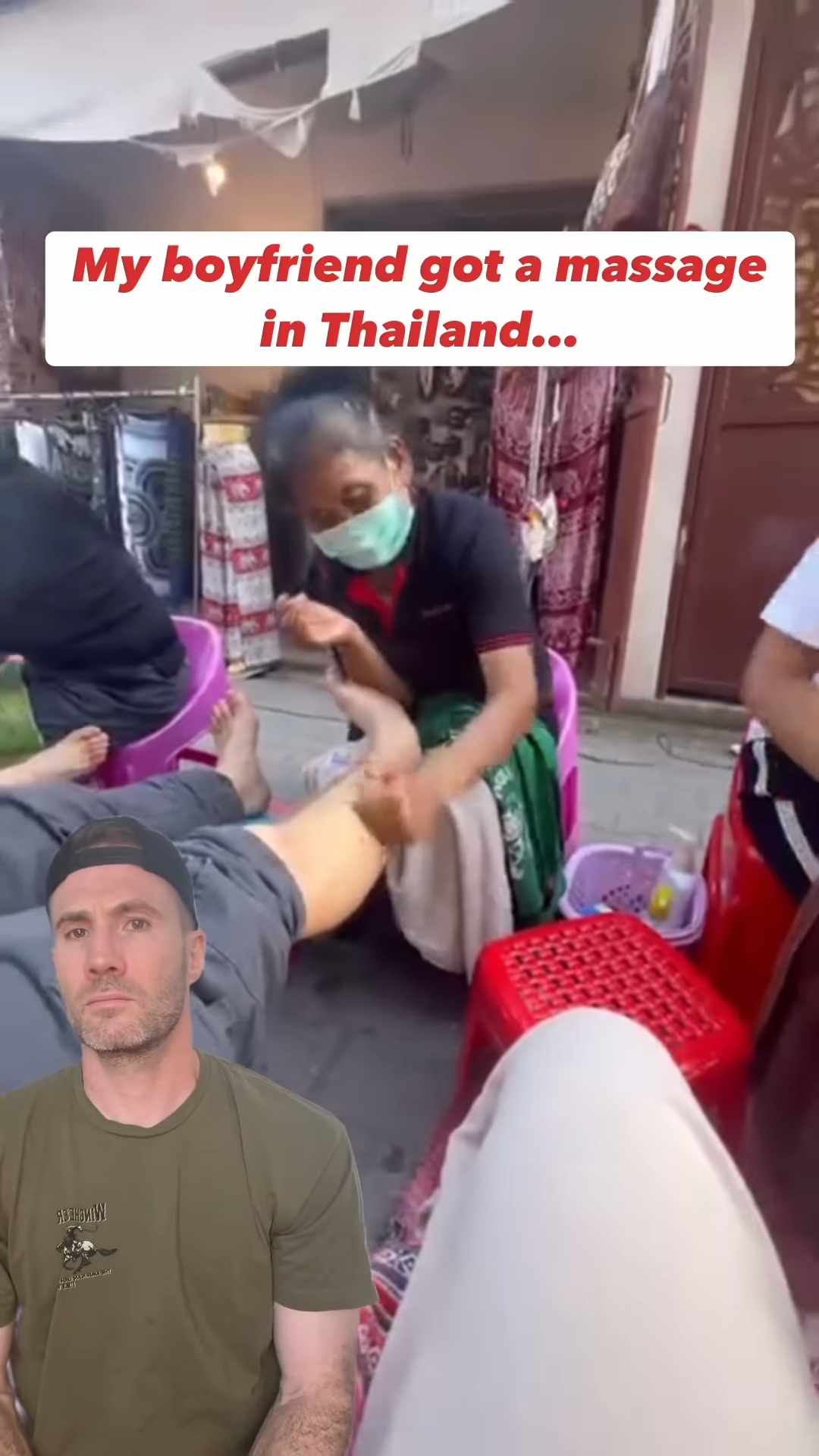 【按摩/泰國/街邊/感染/惡菌/細菌/膿瘡/醫生/警告/黑點】綜合外媒報道,來自美國的急症室醫生Joe Whittington早前分享一段影片,只見一名女子的男友在泰國一條小巷花費5美元(約40港元)讓一名年長婦人按摩。