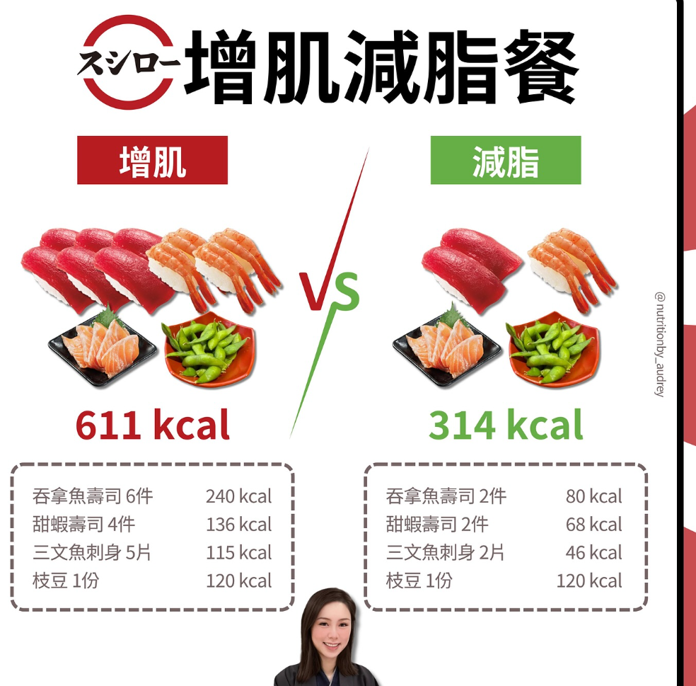 【壽司/壽司郎/熱量/魚肉/卡路里/營養師/增肌/減脂/配搭/魚生/餐單】註冊營養師Audrey在Instagram發帖,指壽司看似沒有甚麼油分,可能令不少人覺得熱量輕盈,但吃太多都會在不知不覺中攝取很多卡路里,她遂分享5招「食唔肥」。