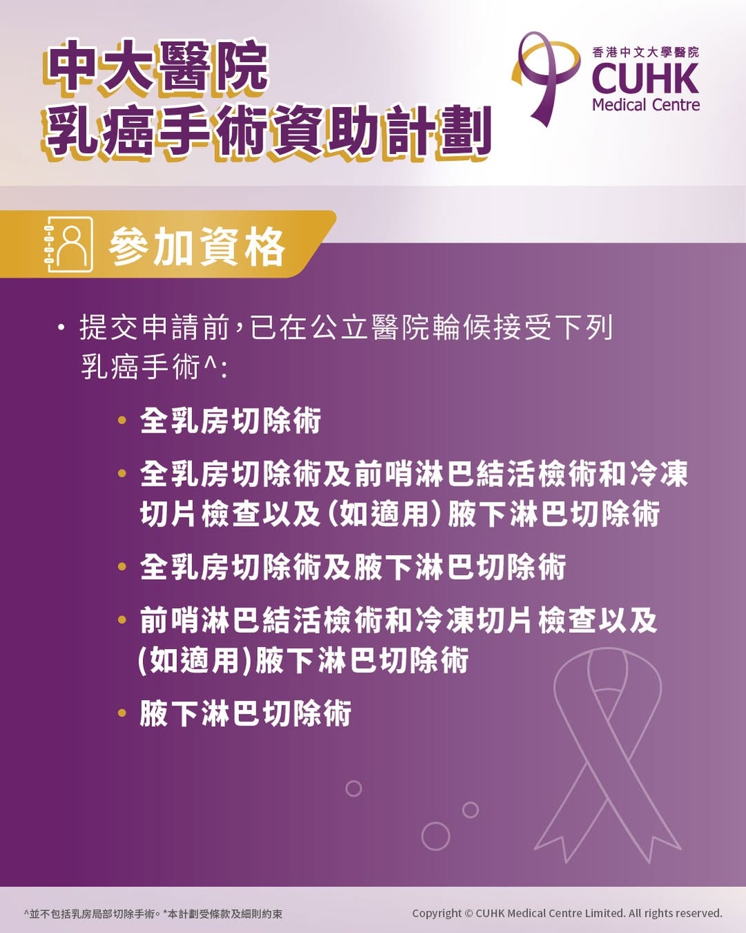 中大醫院乳癌手術資助計劃|申請及參加方式