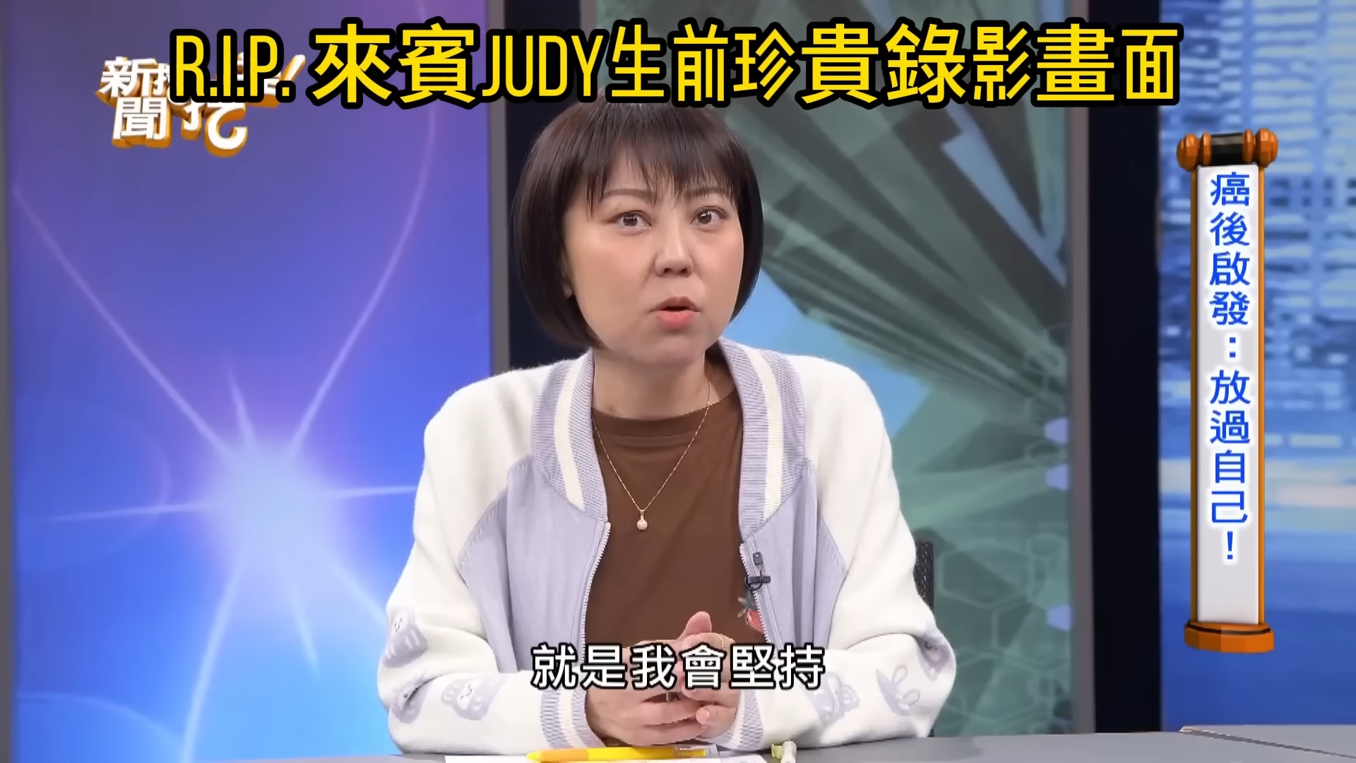 Judy直言抗癌過程相當艱辛,體重從80多公斤(約176磅)降至50公斤(約110磅)以下。她表示如有機會重新再來,一定會選擇「放過自己」,不論是情緒還是對自己的要求。過去的她為了實現夢想、多賺一點錢,非常拚命,也不懂得釋放情緒,遇到事情總是先責怪自己,因此覺得放過自己是非常重要的事。