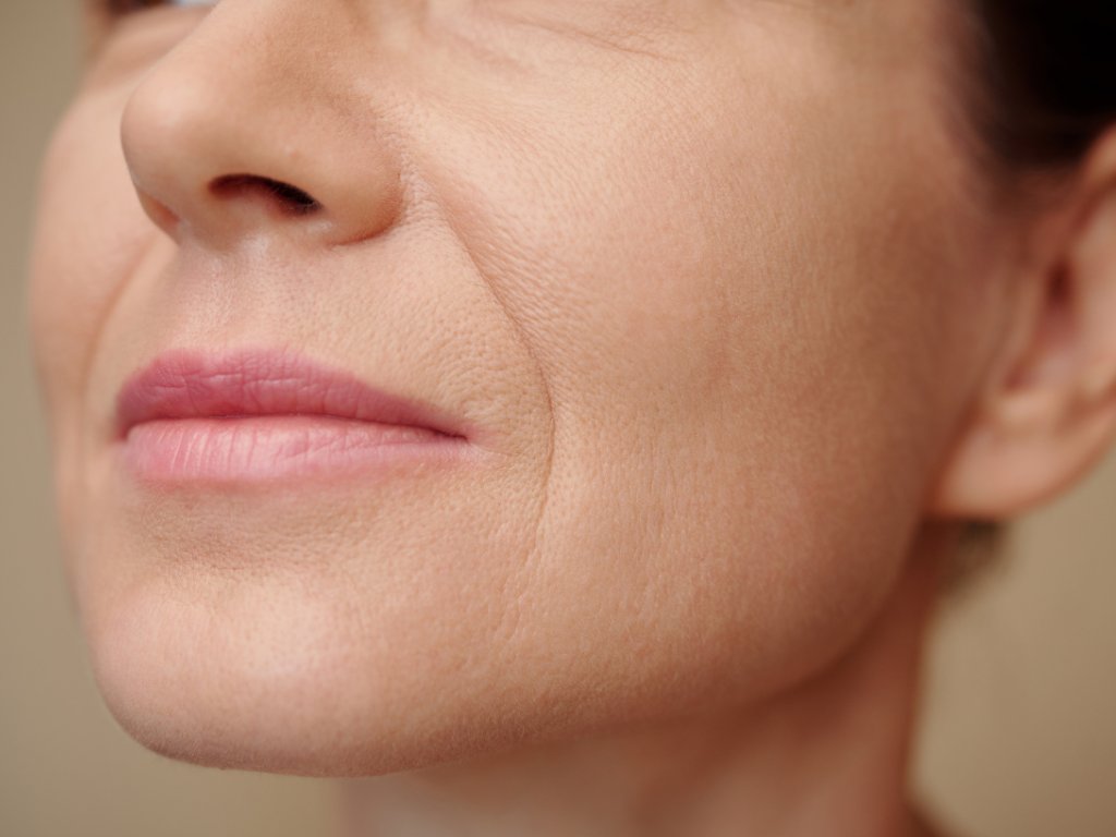 臉部脂肪墊(特別是顴骨)下滑,會把「重量」壓在鼻唇溝,紋路加深。