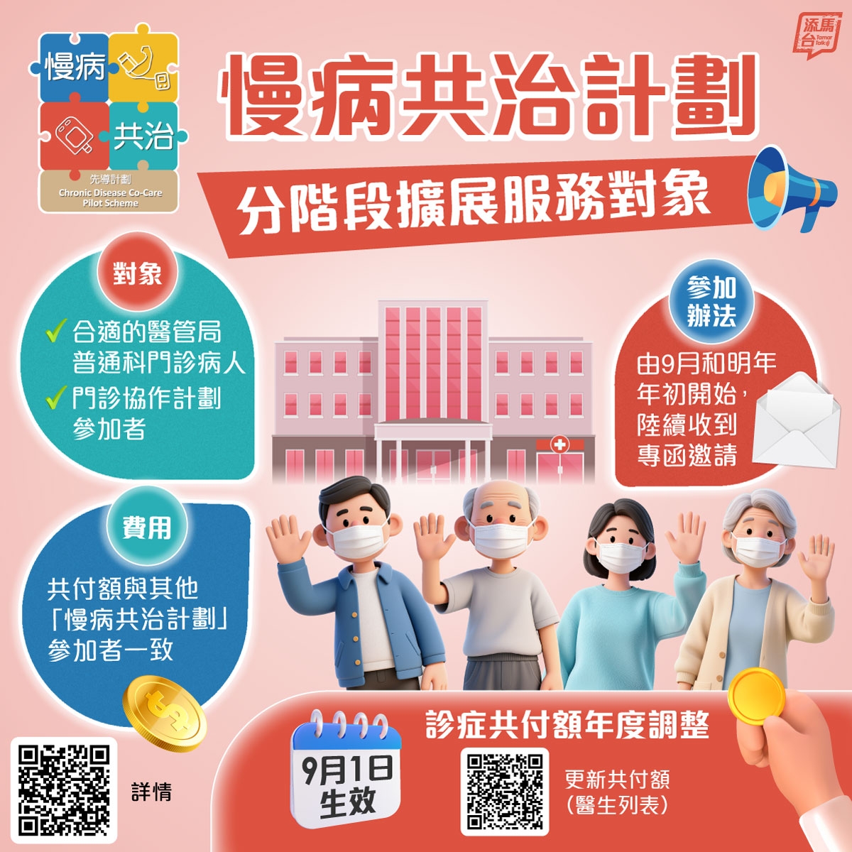 🟠 所有選擇參加「慢病共治計劃」的病人,其共付額及服務安排與其他「慢病共治計劃」參加者一致。
