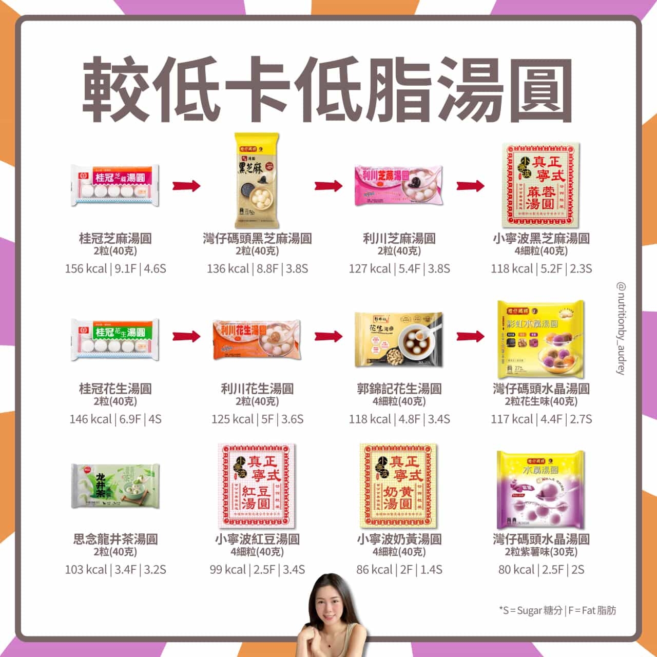【中秋節/湯圓/熱量/低糖/消滯/卡路里/低卡】註冊營養師Audrey在Instagram發帖,分享不同款式湯圓的熱量,以及健康應節和消滯貼士。