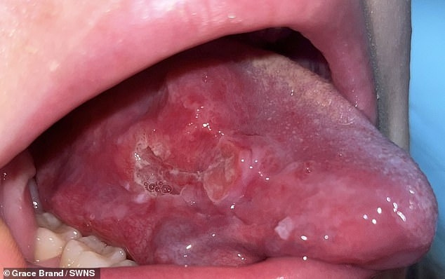 【舌癌/口腔/異樣/壓力/確診/舌頭/說話/口腔癌/警號】綜合外媒報道,來自英國海威科姆的30歲女子Grace Brand今年4月出現口腔潰瘍,疼痛部位位於舌頭右側、靠近後牙,惟她當時認為只是搬家和長時間工作的壓力所致,故未有在意,亦沒有用鏡子檢查。