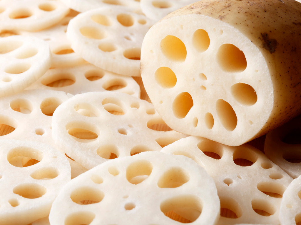 - 清洗:清洗時可用毛刷刷洗,若屬蒸煮需酥軟者,可削皮使用,若發現孔洞中有污染、泥土等設法清潔,最好先整節藕洗完後再切節取段,若氧化節面變色則切除。