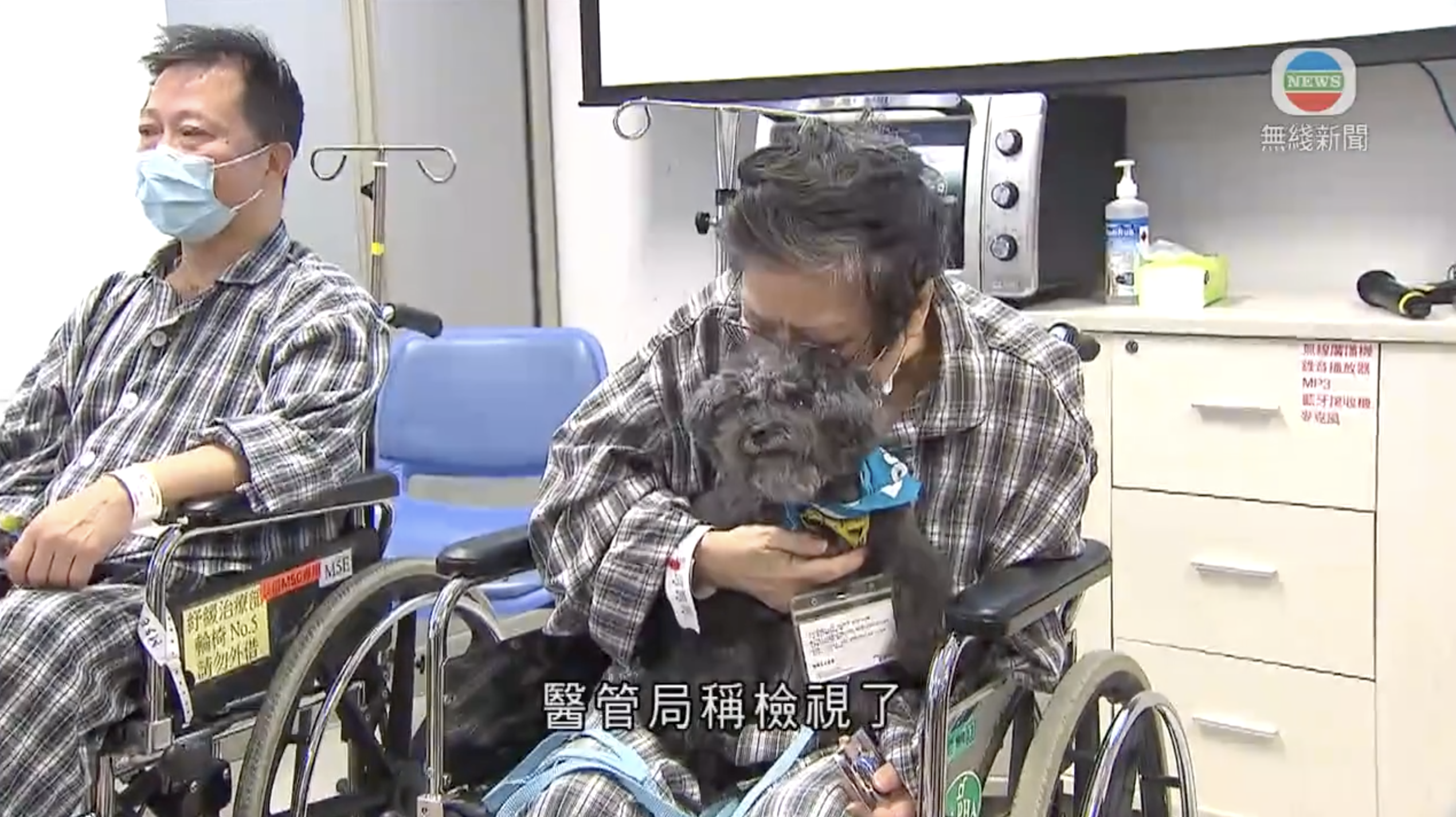 🟠另一位入住明愛醫院老人科/深切治療科的癱瘓病人,因為短時間無法出院,病人家屬於是向院方申請寵物探訪,最終安排病人於單人病房與愛犬見面。