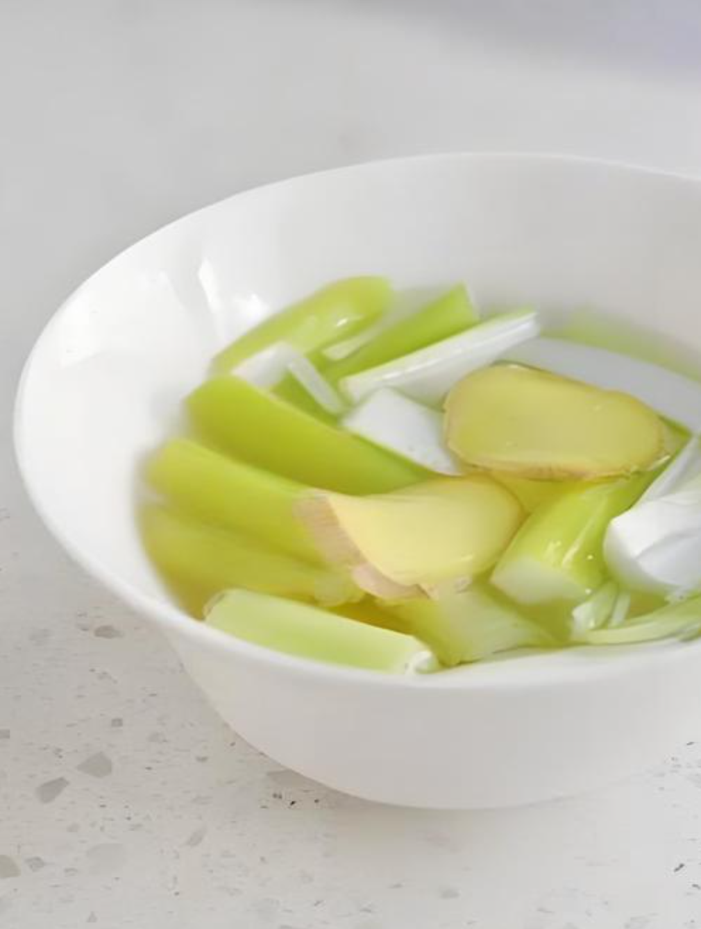 做法: 薑片先入水煮5分鐘後加入蔥白,小火煮3分鐘,熄火後加蓋悶片刻。