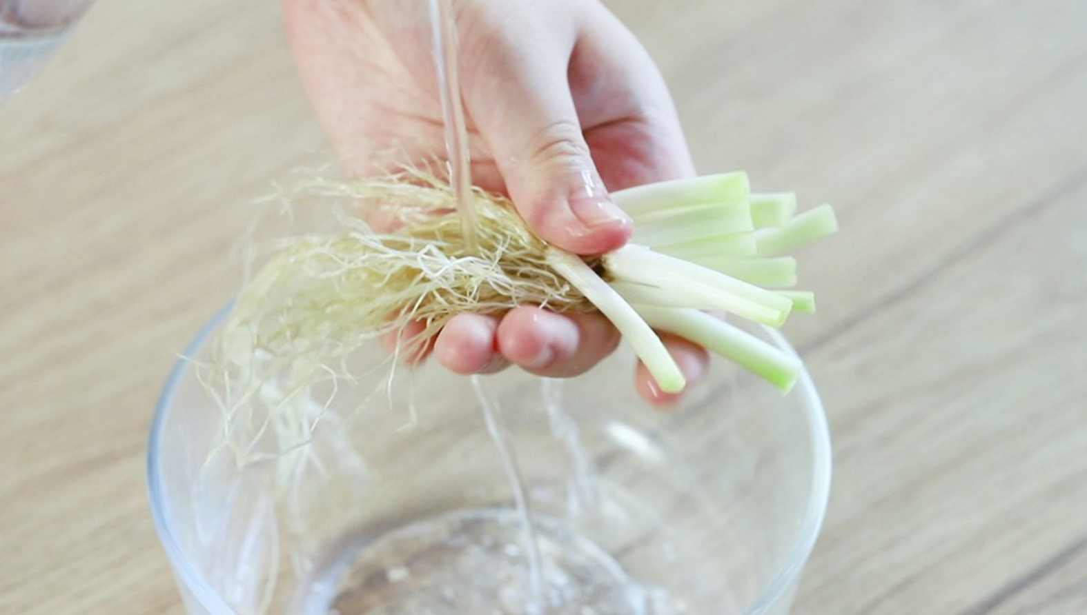 做法: 蔥洗淨切段,凍水放入鍋中,煮滾後再小火5分鐘熄火,加蓋燜1分鐘。