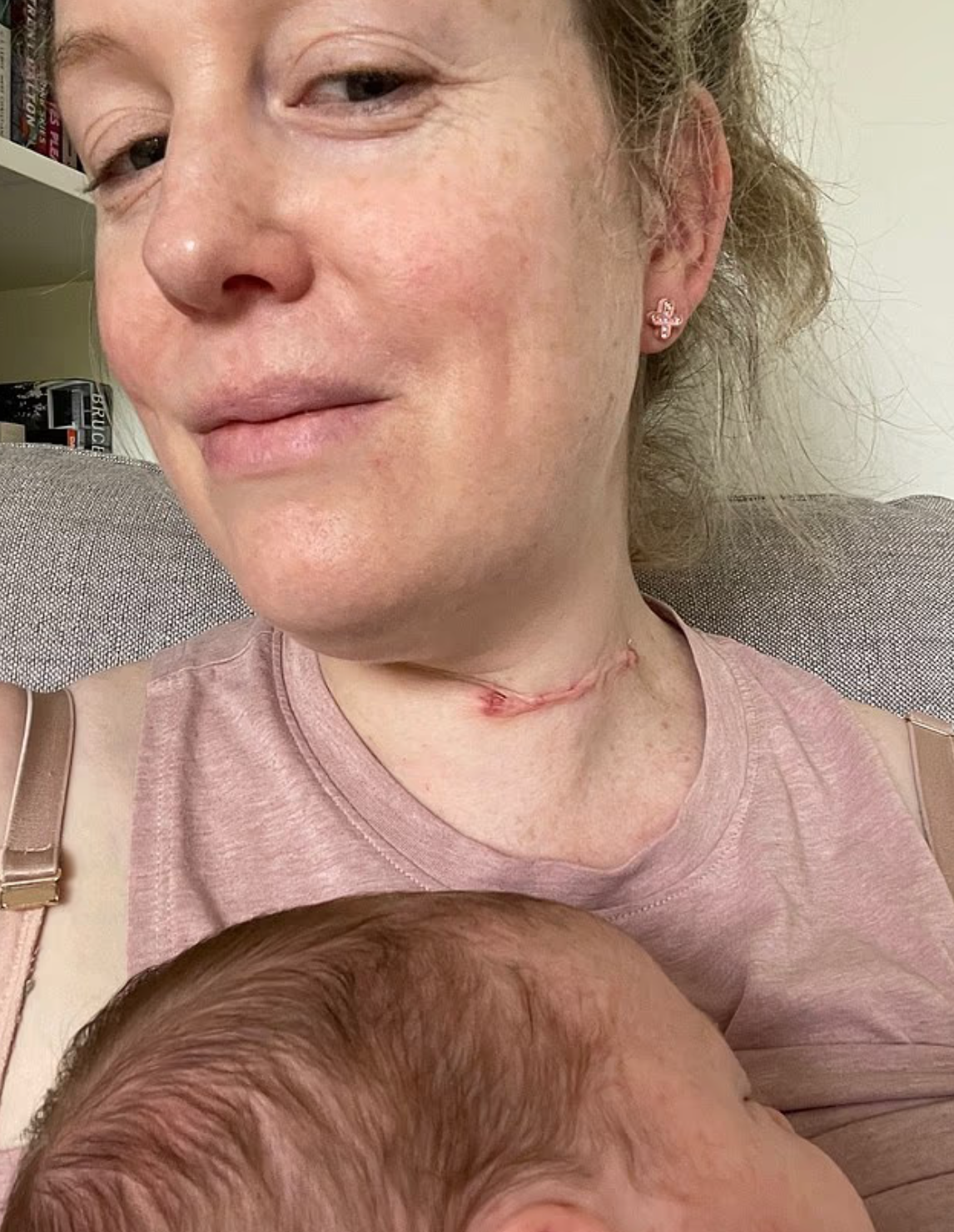 【皮膚癌/頸部/異常/確診/分娩/手術/黑色素瘤】綜合外媒報道,來自澳洲墨爾本的37歲婦人Pauline本身育有1歲長女Abigail,卻在懷有幼女時,注意到頸部有一粒「雀斑」,它很快發展成一粒「痣」,但她起初未有為意。
