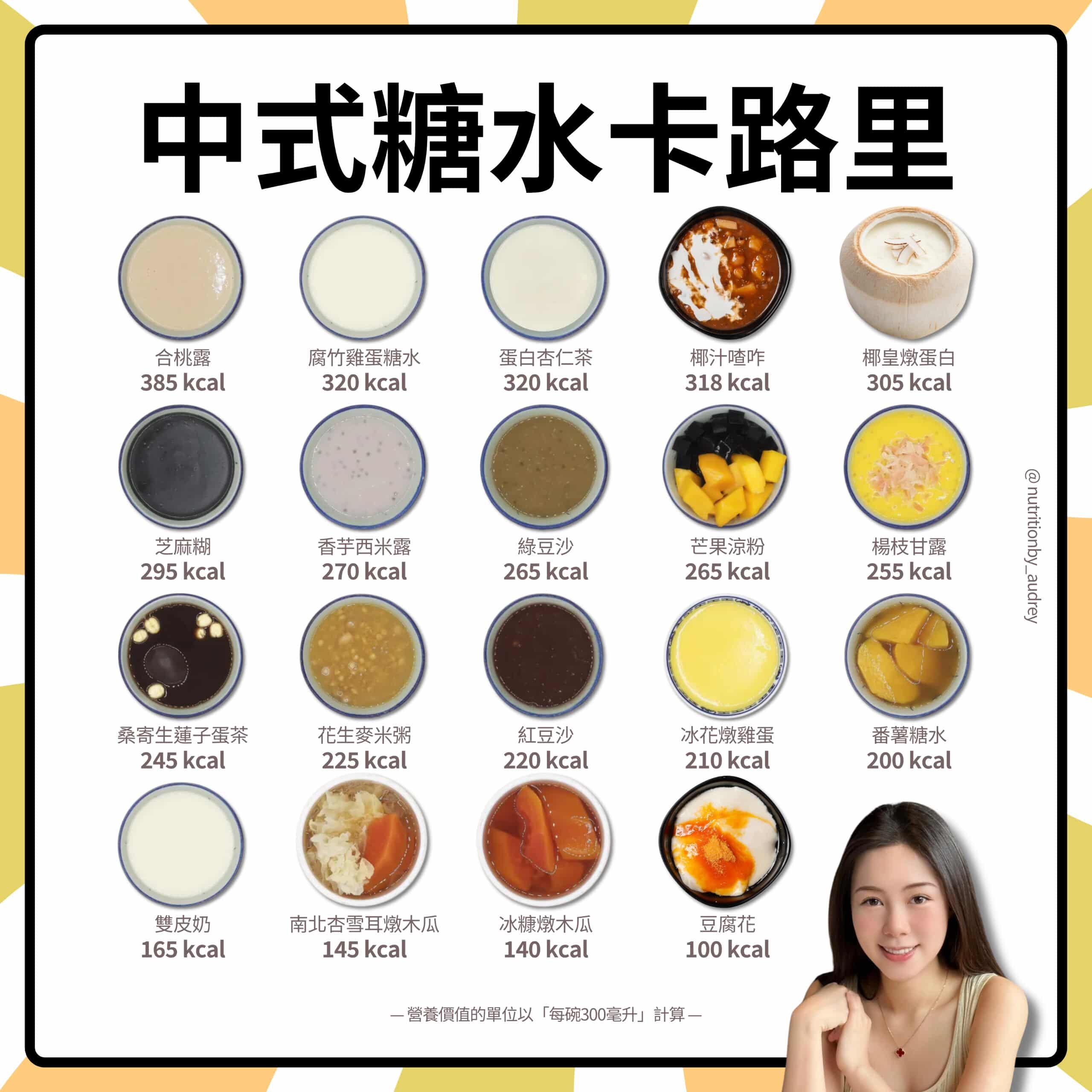 【糖水/中式/熱量/合桃露/白飯/營養師/卡路里/健康】註冊營養師Audrey在Instagram發帖,分享不同中式糖水的熱量,以及3招「食唔肥」。