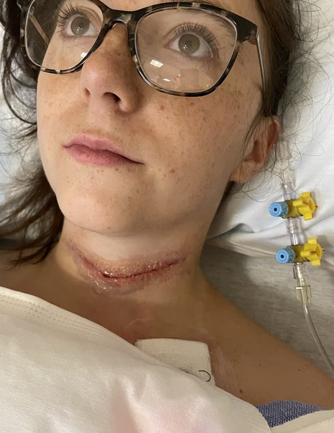 得知診斷結果不到1個月,Rachel就面臨長達5小時的大手術,切除甲狀腺和受影響的淋巴結,頸部留下2至3英吋(約5至7.6厘米)長的疤痕,她直言「第一次看到我的疤痕時,確實很害怕,我當時滿腦子想的都是它會如何癒合。現在我甚至不在乎你是否能看到它,它提醒我,我的力量不容小覷」。