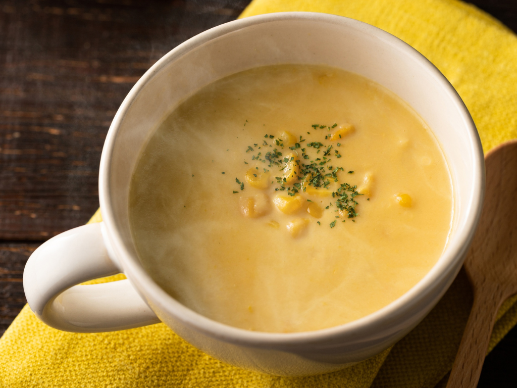 做法:粟米粒加高湯煮滾,最後倒入燕麥奶調整濃度。