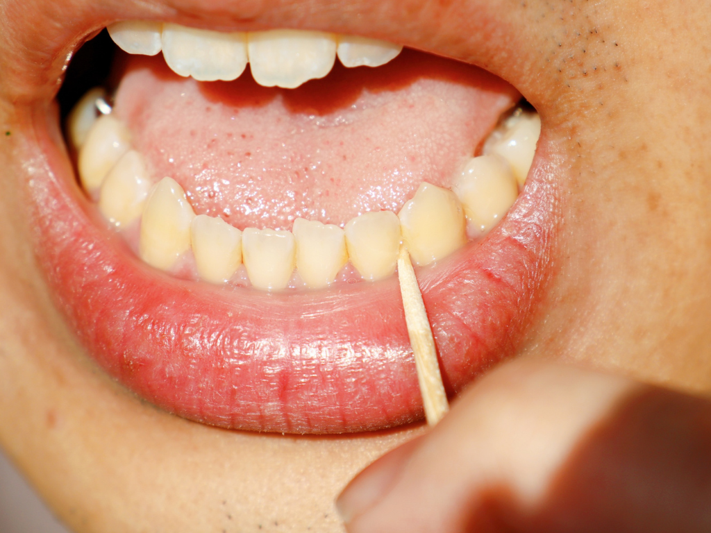 牙籤僅能靠外力把卡住的東西勾出,但對牙縫內貼著牙面的細菌膜完全無能為力,即看起來乾淨,但細菌還在。