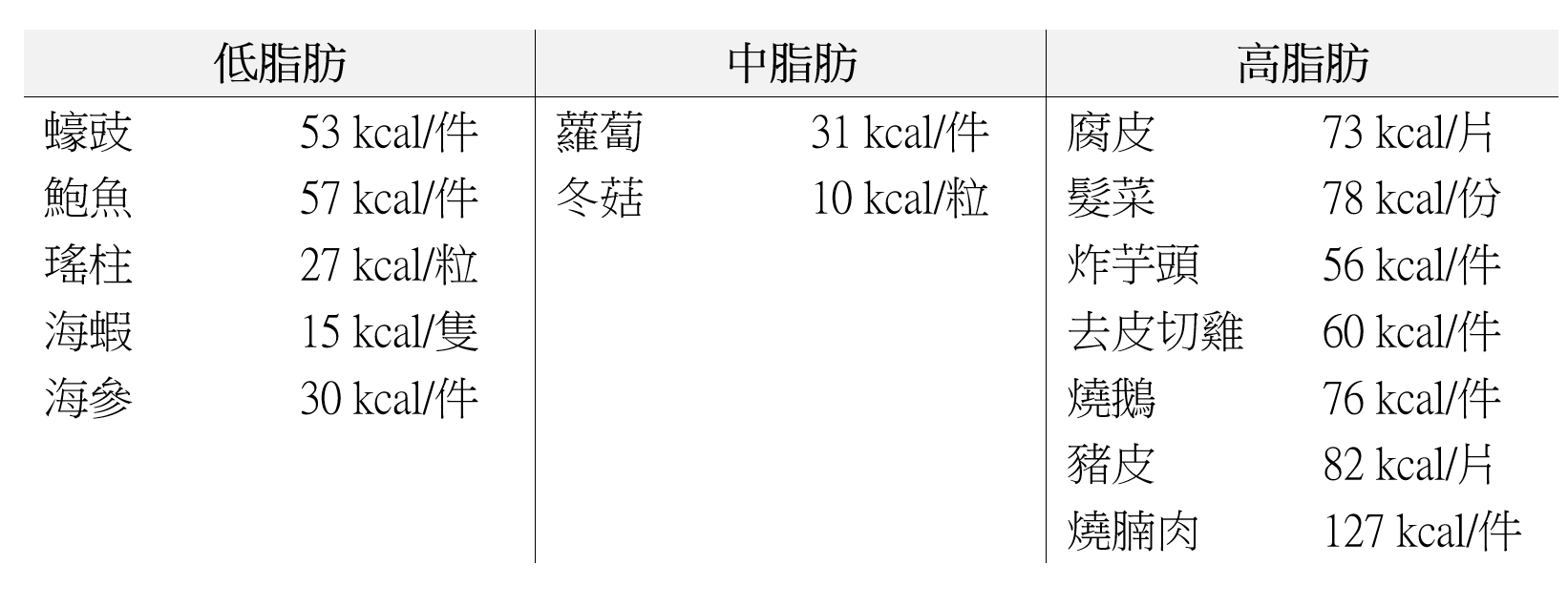 - 燒味、滷味宜去皮、去肥膏,可大幅減少6至7成脂肪攝取。
