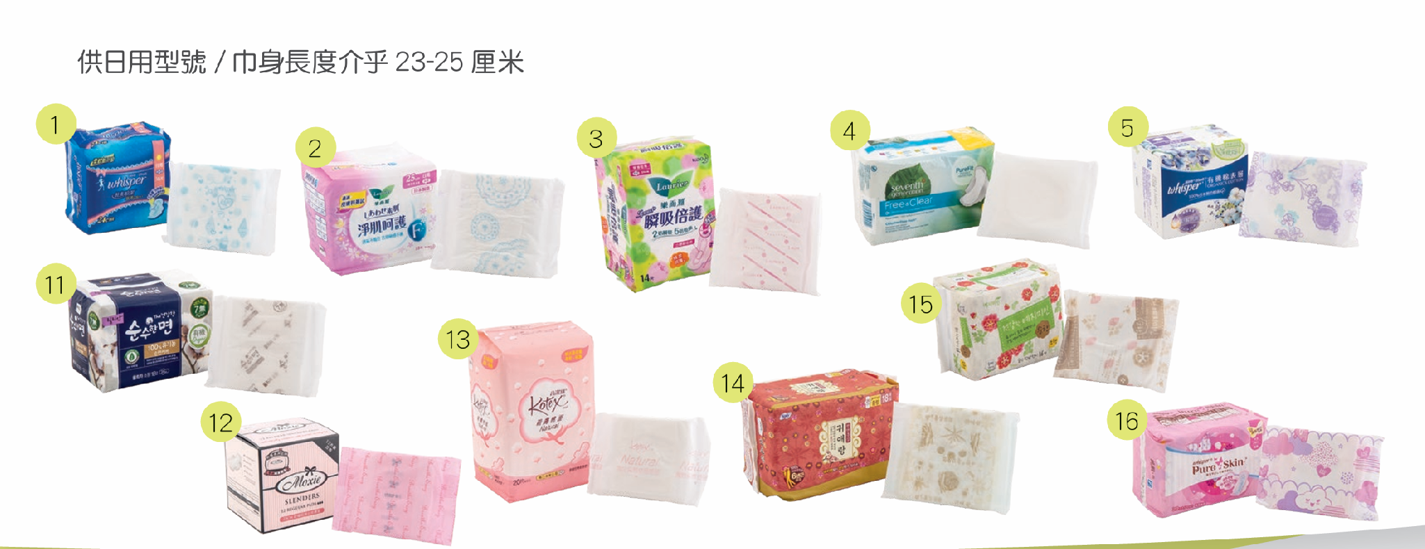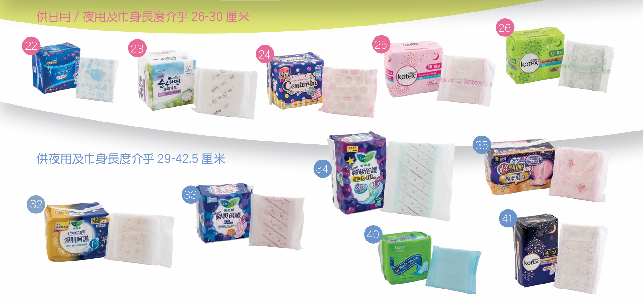 供日用/夜用型號及巾身長度介乎26至30厘米
