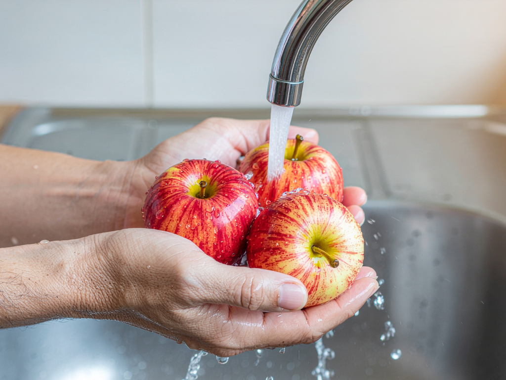 - 凹凸果實(如草莓):藉由沖刷帶走隙縫髒污,可搭配軟毛刷。