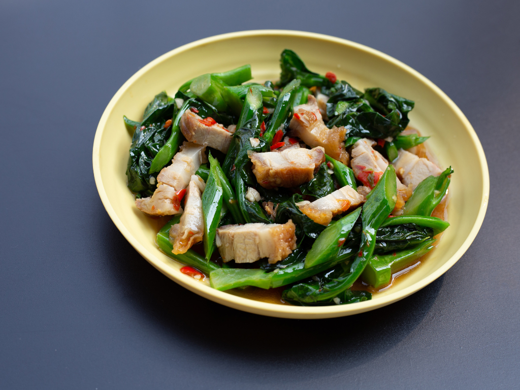 做法:熱鍋油爆香大量蒜末與薑片(薑能中和芥蘭寒性),大火快炒芥蘭,起鍋前沿鍋邊淋一圈米酒和少許糖,糖能帶出芥蘭的甘甜。