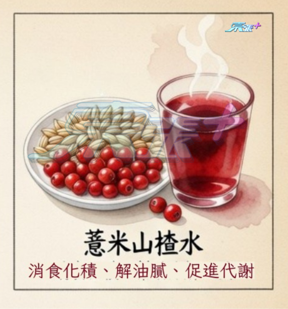 - 功效重點:消食化積、幫助分解油膩、促進脂肪代謝,適合大餐後或經常外食油膩人士作「刮油茶」。山楂有助消肉積、活血化瘀,與薏米同用可兼具祛濕及調脂作用。