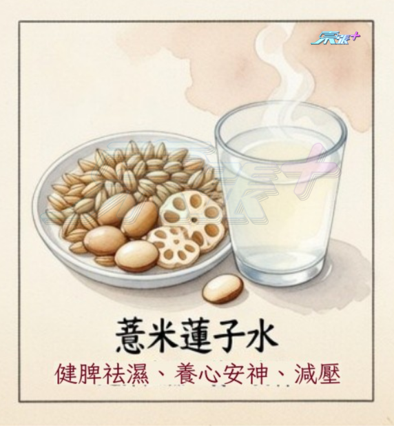- 功效重點:健脾祛濕同時養心安神,適合壓力大、睡眠質素差的人,蓮子有補脾止瀉、養心寧神之效,可改善心煩易驚及失眠。