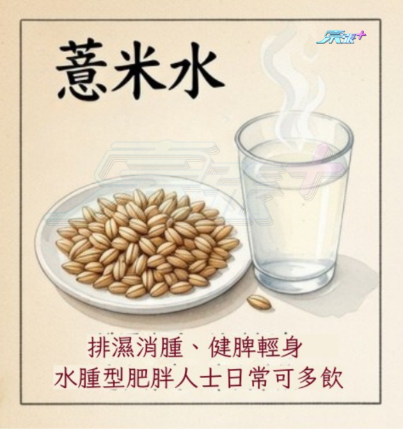 - 濕氣重、易水腫者:手腳腫脹、晨起面腫、體重忽升、久坐冷氣族,可飲薏米水利水消腫。