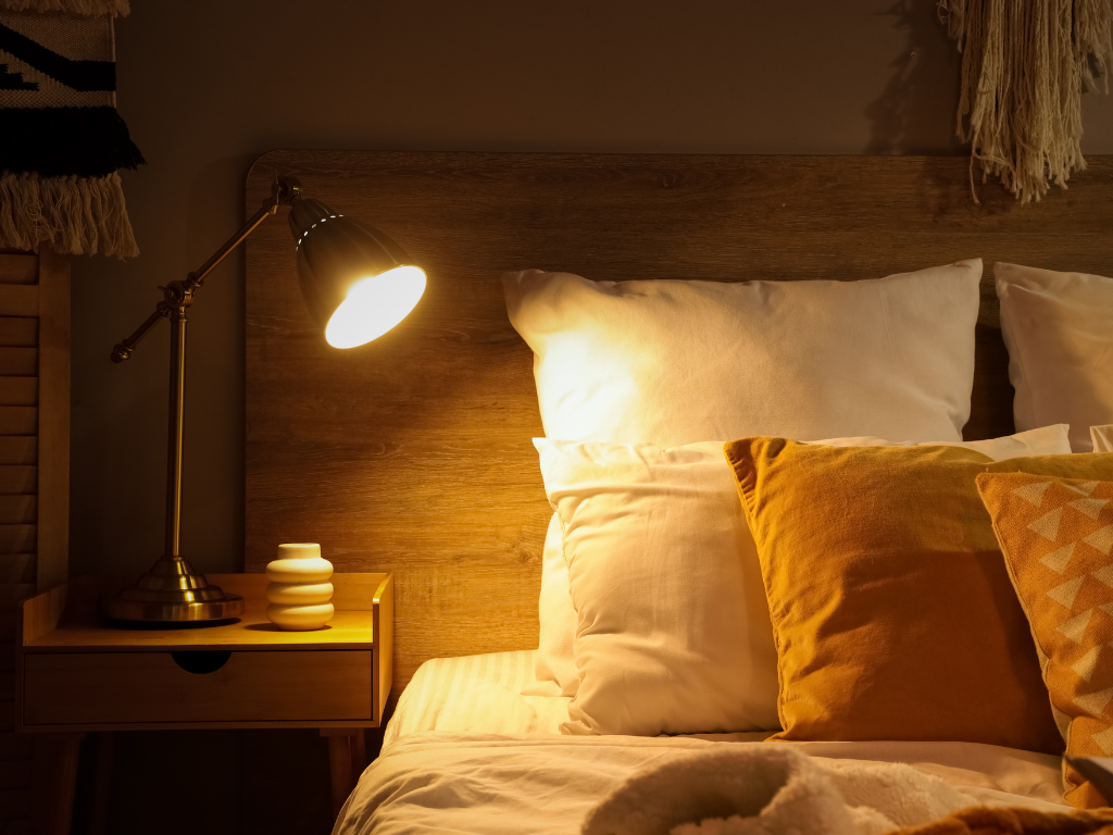 將夜燈放低、放偏,避免光線直射臉部,減少視網膜的光線接收。
