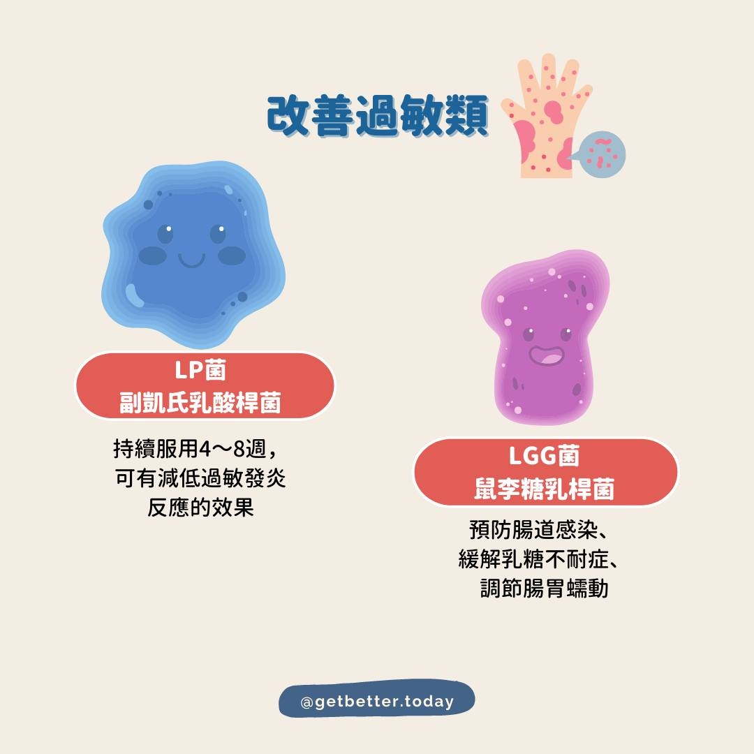 2.LP菌(副凱氏乳酸桿菌):LP菌可減低過敏發炎反應的效果。