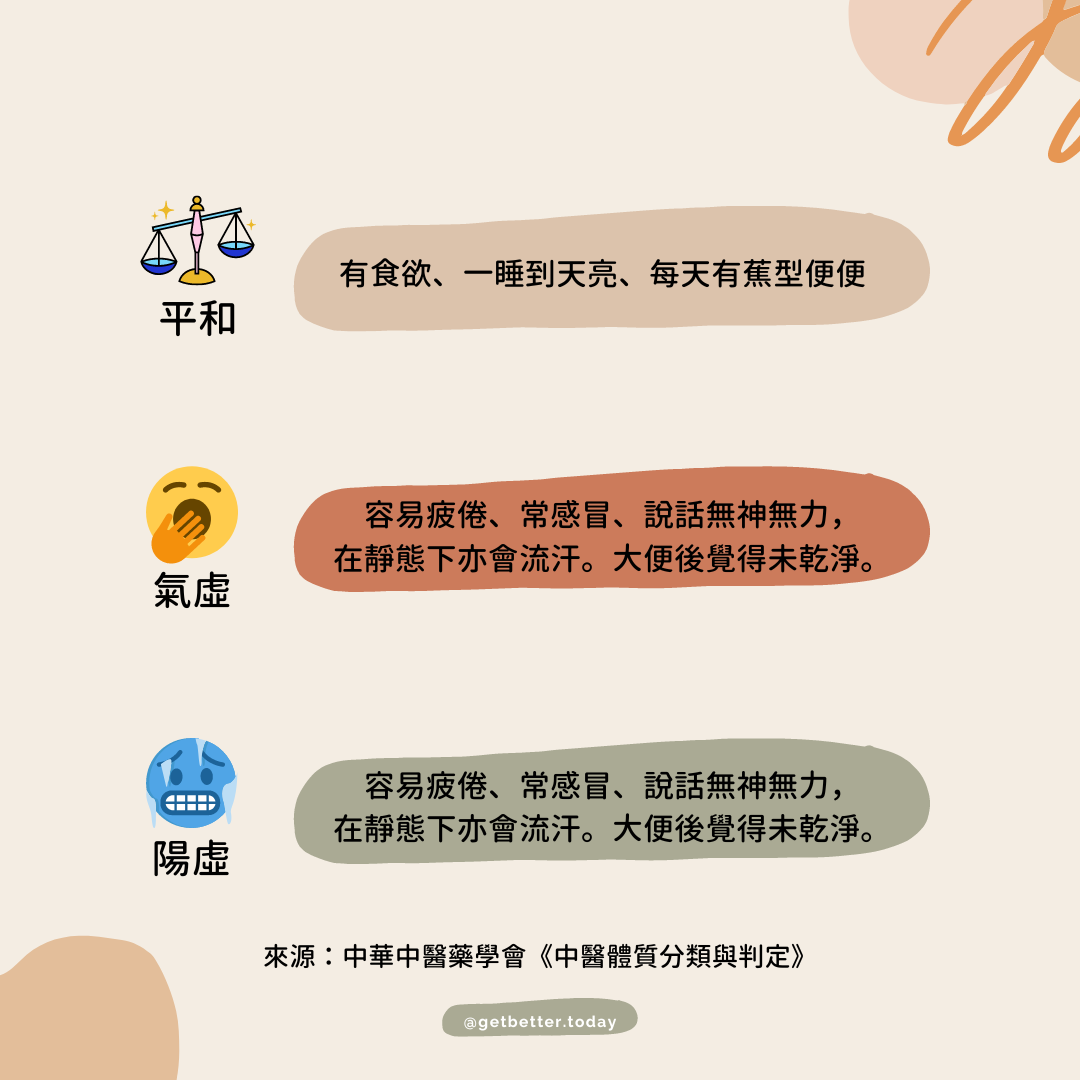 根據中華中醫藥學會《中醫體質分類與判定》,