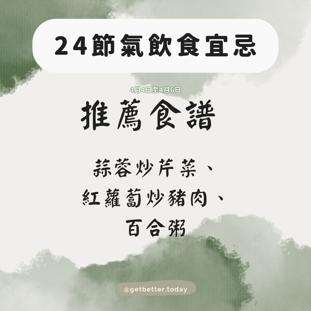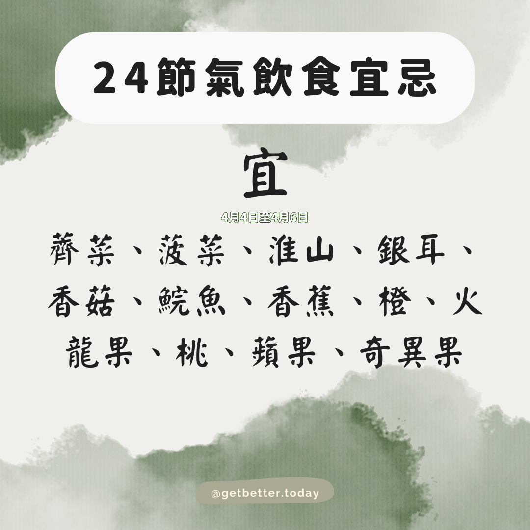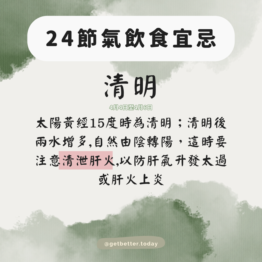中國傳統農曆嘅廿四節氣,除咗講天氣之外,其實都提到「因時而食」及「不時不食」嘅道理!清明前後比較濕熱,要注意清肝去濕,揀以上嘅時令食物,自然食得健康之餘又鮮味滿分!
