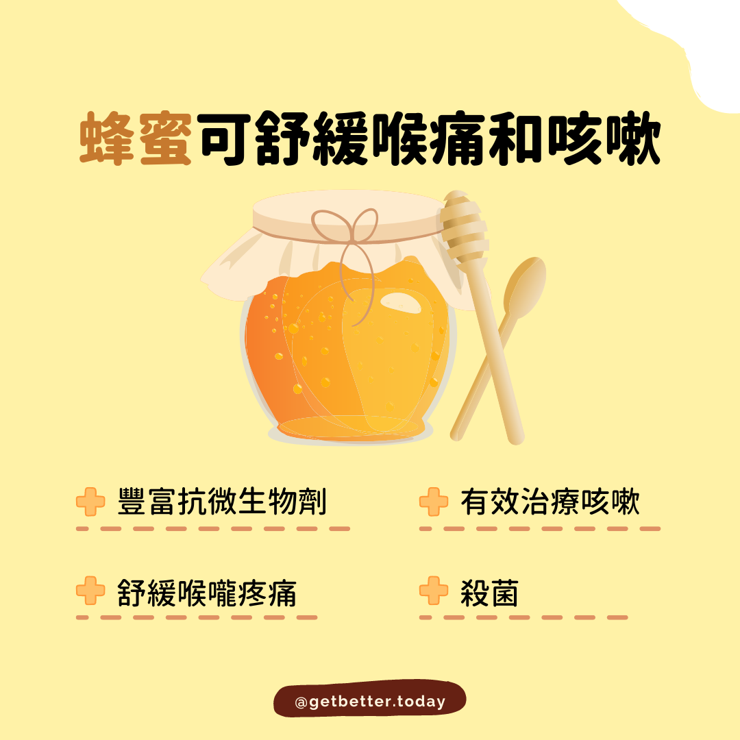 🍯蜂蜜可舒緩喉痛和咳嗽