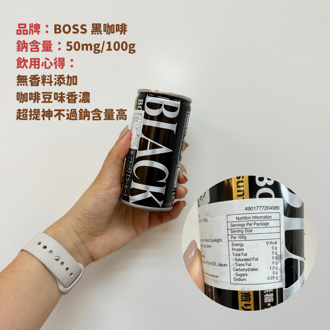 4️⃣ Boss 黑咖啡:無香料添加、咖啡豆味香濃,超提神不過鈉含量高