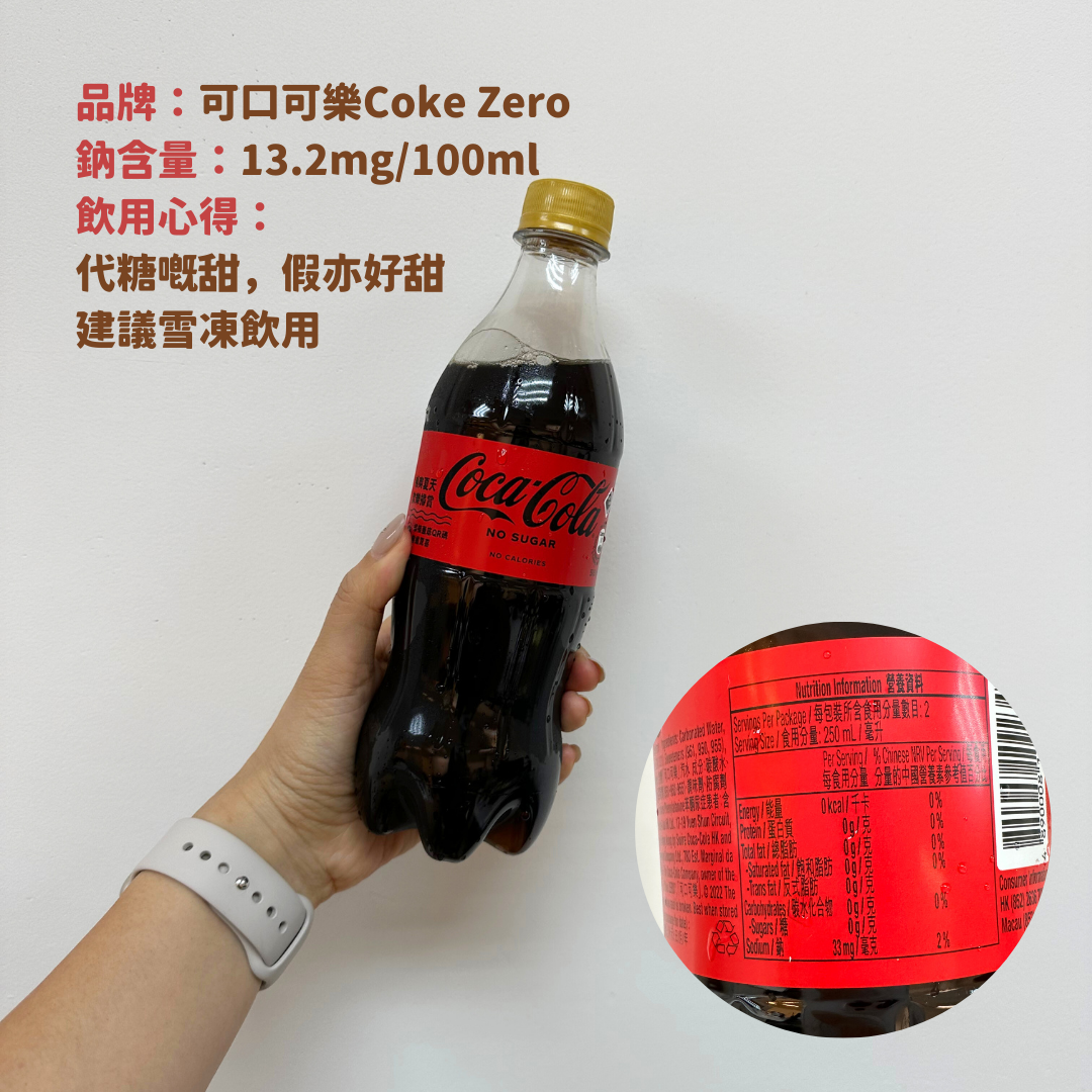 8️⃣ coke zero: 代糖嘅甜,好假亦都好甜,都會留喺口腔好耐,建議雪凍飲用,咁樣就唔會覺得太甜;雖然有33mg鈉可以補充運動後流失嘅電解質,但係氣泡量太多,唔適宜運動後快速地飲用。