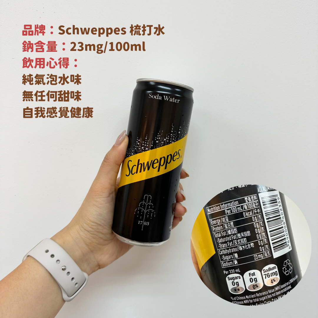 3️⃣ Schweppes 梳打水:純氣泡水味,無任何甜味,感覺好健康