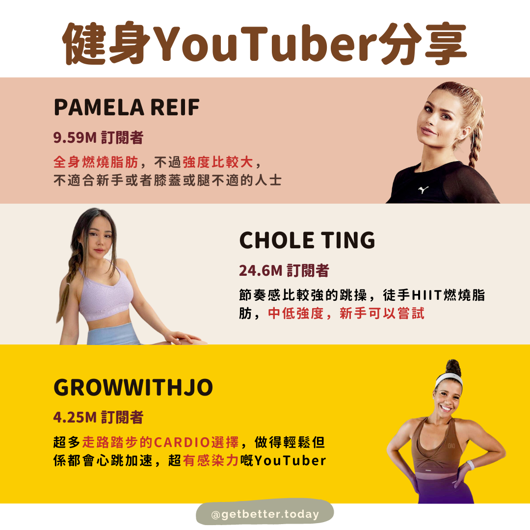 超多走路踏步的CARDIO選擇,做得輕鬆但係都會心跳加速,超有感染力嘅YouTuber