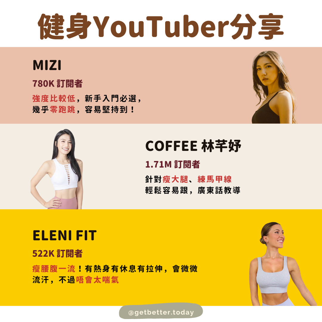 今次就搵黎網上好多人跟住做嘅健身YouTuber,全部都有唔同嘅特點唔同嘅優勢,睇吓邊個你最想跟啦!