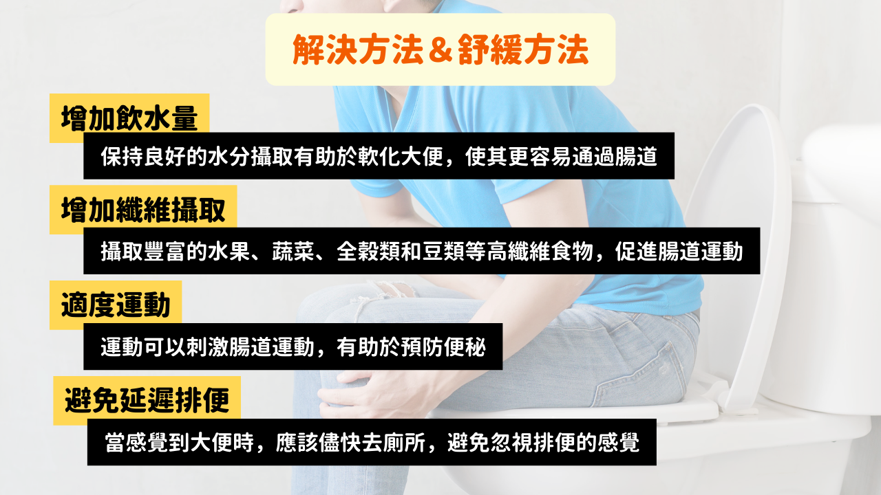 便秘是一個常見的問題,但通常可以通過調整生活方式、飲食習慣和適度運動來解決。如果便秘持續或伴隨著其他不尋常症狀,請尋求醫生的建議。
