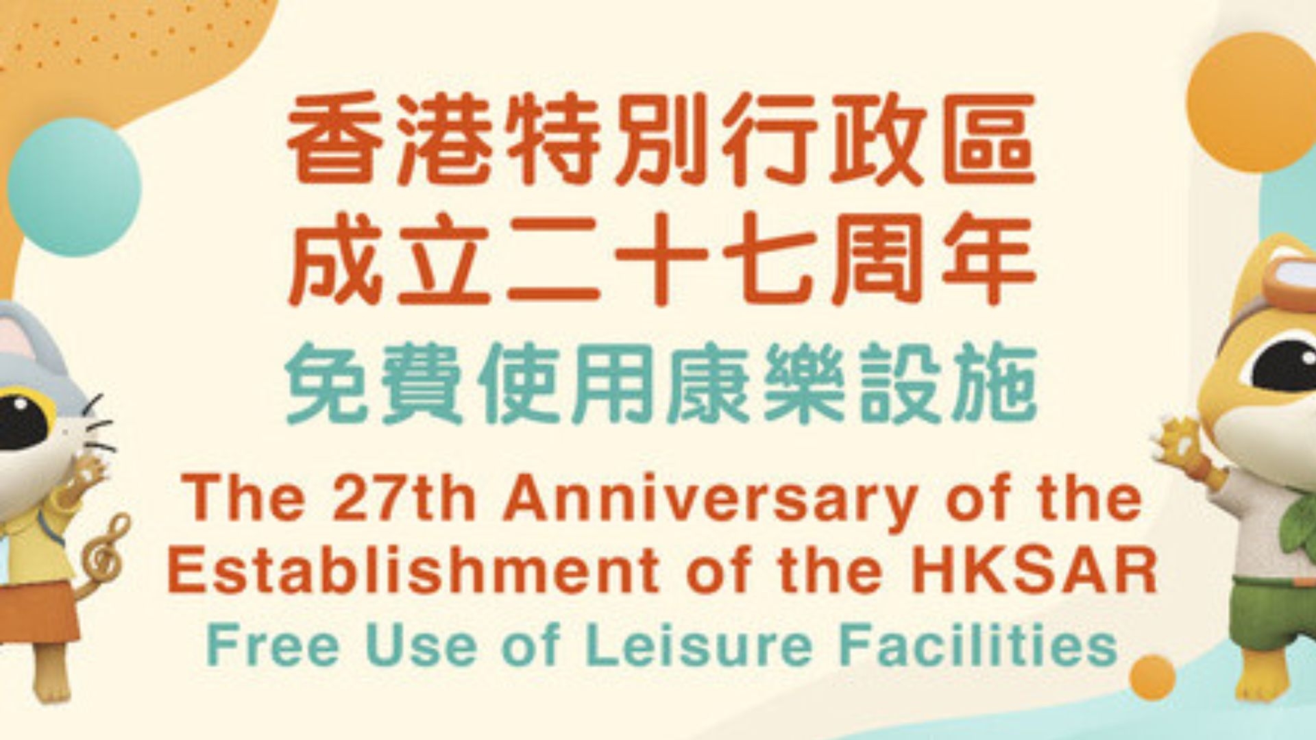 為慶祝香港特別行政區成立二十七周年,行政長官李家超昨日(11日)預告,7月1日當日將有多項優惠,當中包括免費使用康文署室內外設施,有關設施有室內康樂設施,戶外康樂設施,公眾游泳池、水上活動中心等。
