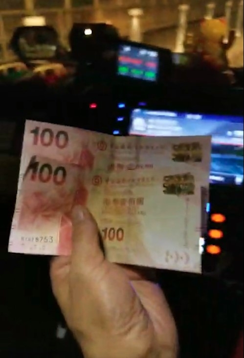 最近似乎越來越多假鈔流入市面,有的士司機拍片,講述自己中招經過,片段在網絡瘋傳。一名的士司機拍片說,自己收到兩張$100現鈔,當時放在車頭乘客座位上,準備找錢,當時不以為意。他說在乘客離開後,才發現其中一張$100現鈔有可疑,不單手感非常光滑,而且印刷更加反轉了,才發現自己中招!