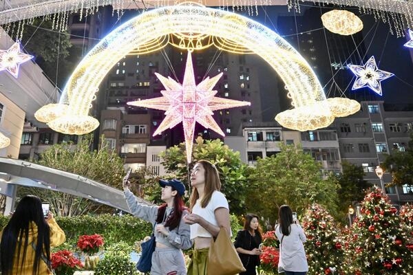 灣仔利東街則懸掛一顆五米高許願星,為佳節注入正能量。![]()