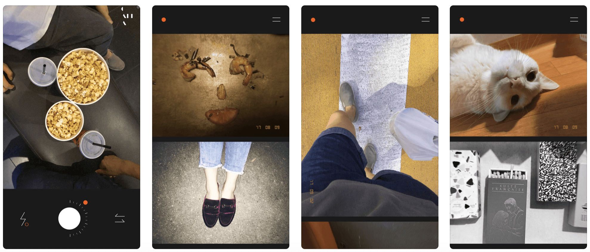 3. HUJI:這個app的界面仿照了經典的即棄相機設計,預設的鏡頭位於畫面的左上角,當你靠近鏡頭時,畫面就會放大,並提供閃光燈、自拍計時等功能,非常適合對即棄相機感興趣的人。你可以立即查看拍攝後的照片,非常方便。