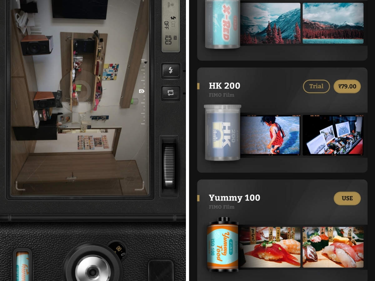 2. FIMO:這個app的界面與傳統菲林相機非常相似,可以顯示閃光燈設定和感光度等細節,連換菲林的畫面也很逼真。你可以立即查看拍攝後的照片。如果對使用app內置相機拍攝不太有信心,你也可以直接選擇相簿中的照片並添加特效。