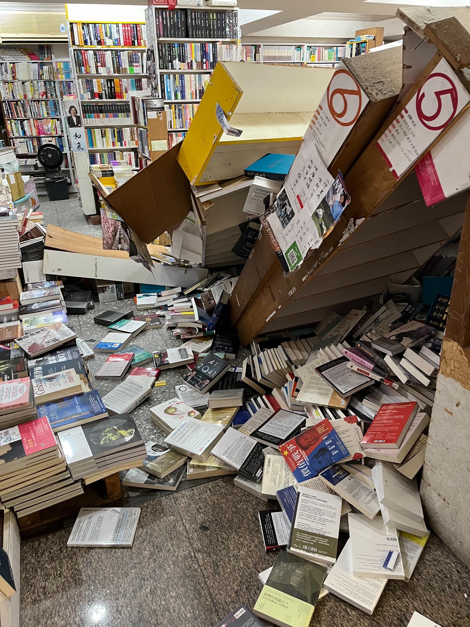 台灣花蓮強烈地震,全台灣都有震感,在台北市,有書店被地震震至書架倒地,藏書散落一地,情況混亂,但此時亦盡顯人性光輝,老闆娘在網絡徵求書友熱心幫忙,大家一呼百應!