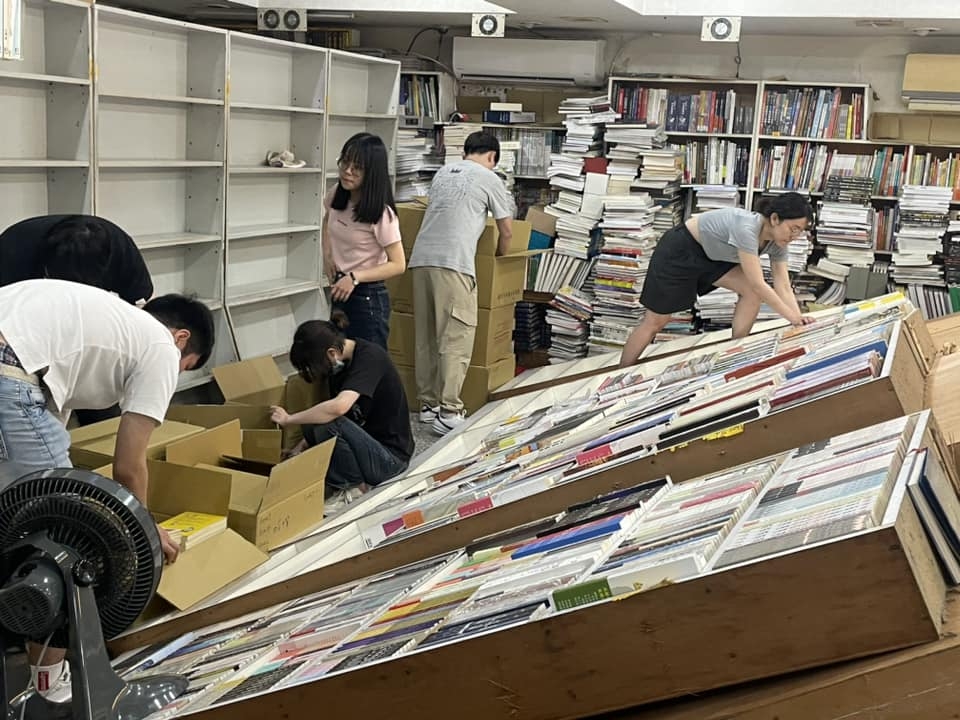 老闆娘在帖文說:「一開鐵門,書店書架全倒…好險當時沒營業沒造成顧客與人員受傷……急徵書友幫忙整理,包括裝箱分類、書櫃復位、書籍上架。」