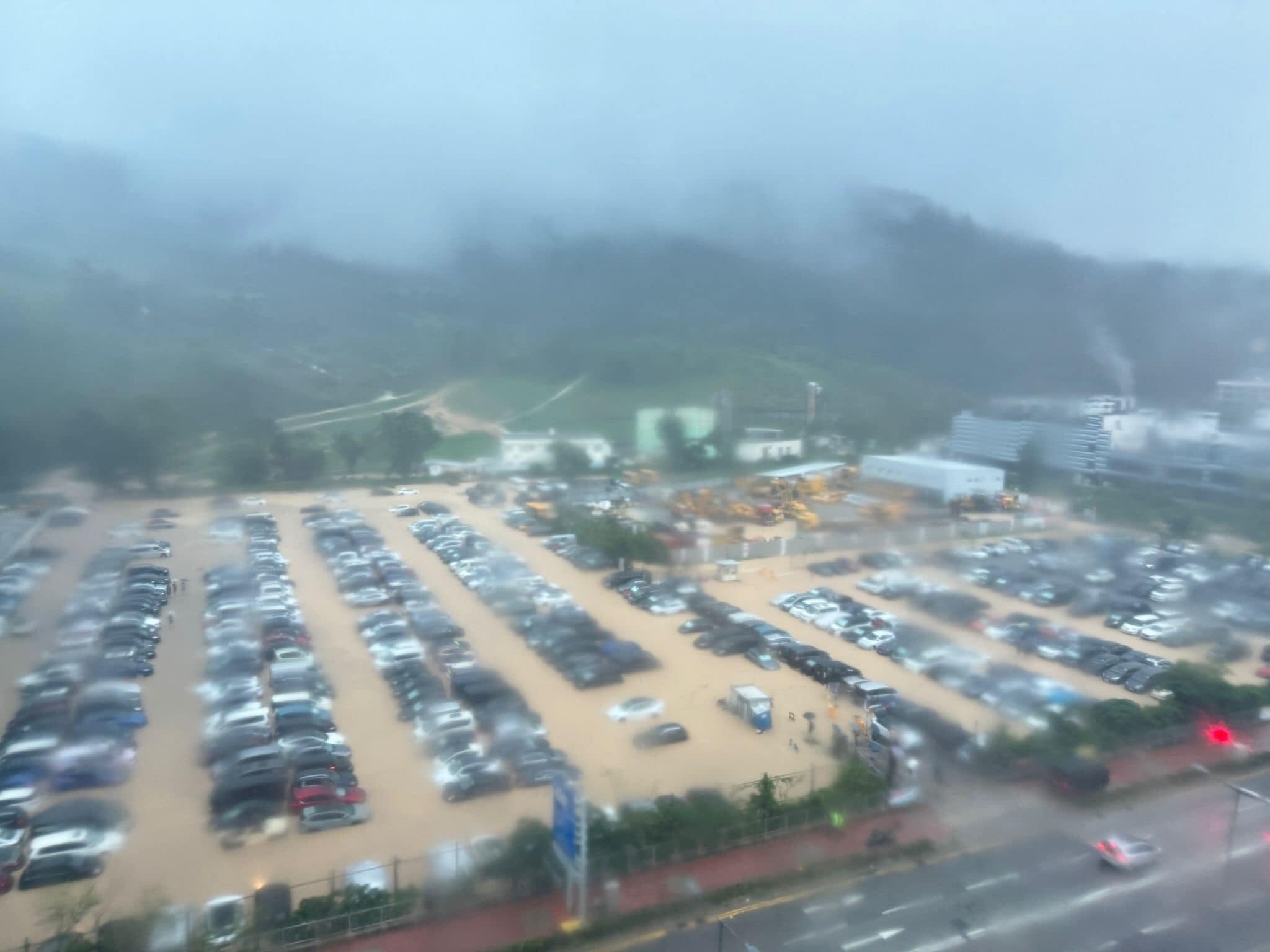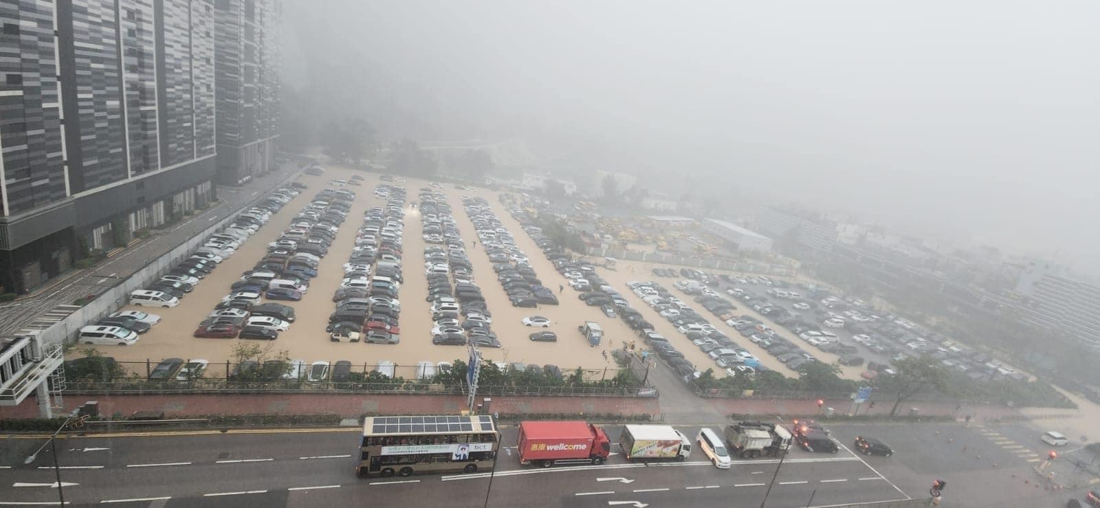 將軍澳多個臨時停車場水浸嚴重,場面觸目驚心!2024年5月4日11時因水浸,以下路段的全線現已封閉: